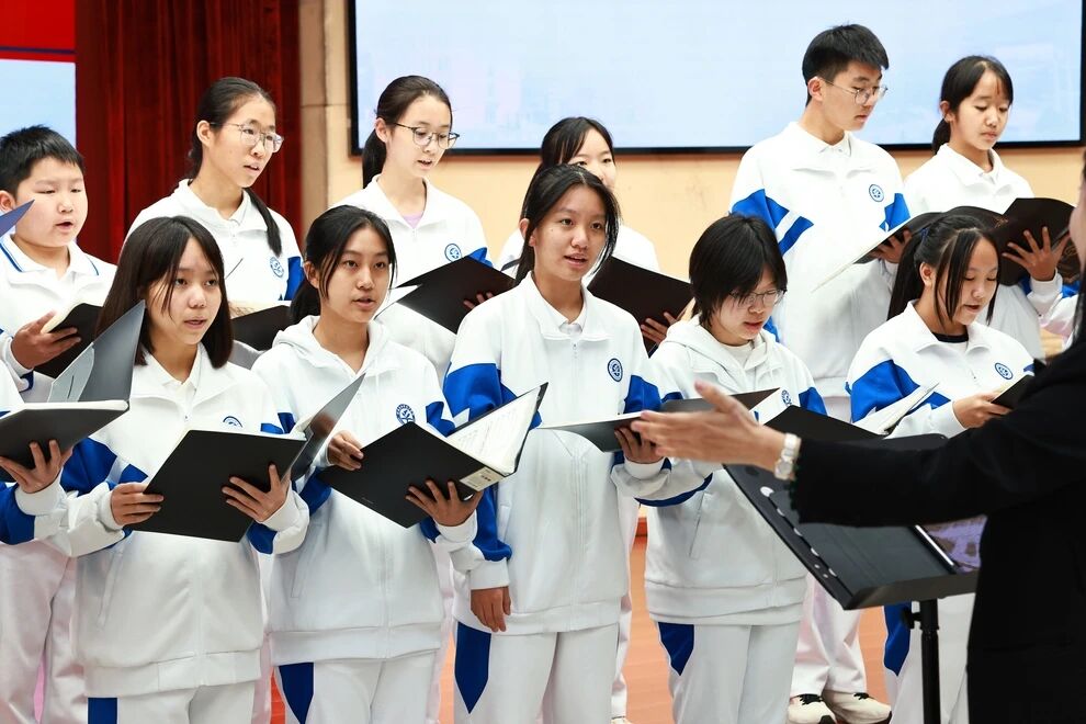 大会的最后,学校星辰合唱团的孩子们献唱《她说》与校歌《我心飞扬》,校歌熟悉的旋律,一下子将校友们拉回那段青春热血的日子。